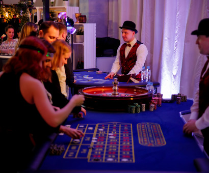Такой праздник привлекателен не только благодаря азартному настроению, но и своей великолепной организацией. Мы предоставим все необходимое для проведения мероприятия – от элегантных игровых столов, профессиональных крупье до соответствующего тематического реквизита и декораций. Ваши гости смогут попытать удачу на рулетке, почувствовать адреналин от игры в карты и получить удовольствие от антуража, благодаря брендированным купюрам и дресс-коду в стиле «Америка-20-х». Все будет продумано за вас - от секретности кульминационного момента вечера до безупречного обслуживания гостей. Мы заботимся о каждой детали, чтобы ваш праздник стал незабываемым и оставил яркие впечатления у всех присутствующих!